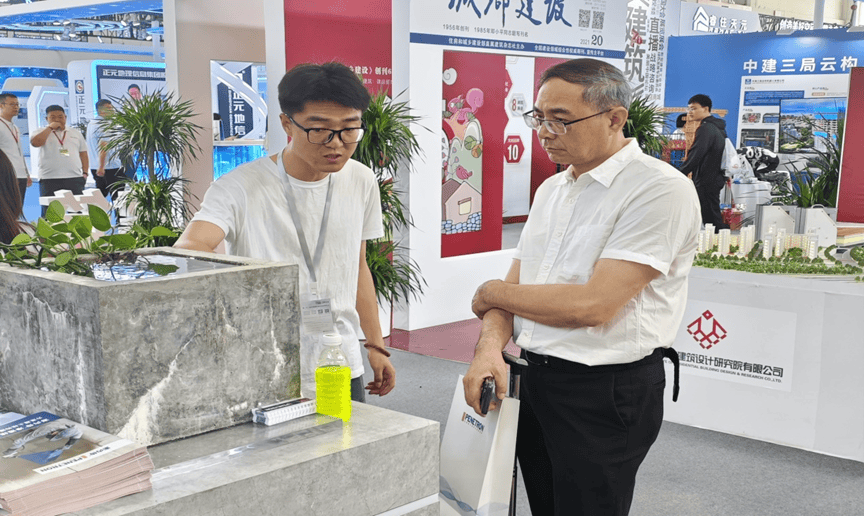 展會期間,來自全國各地的設計單位、建設企業(yè)、參展單位領導、高校在讀學生以及相關單位人員紛紛來到澎內(nèi)傳公司展臺前駐足參觀,大家對澎內(nèi)傳產(chǎn)品的機理和特性產(chǎn)生濃厚的興趣,對于普遍存在的“滲漏通病”這種宏觀的問題,采用微觀的辦法來解決,感到不可思議,又對產(chǎn)品的耐久性、綠色環(huán)保、使用方法、施工質(zhì)量監(jiān)控以及后期效果等疑問進行深入詳細的探討。澎內(nèi)傳展臺前人頭攢動、絡繹不絕,看來人們對好房子、不滲漏的發(fā)展目標有著共同的渴望和需求。